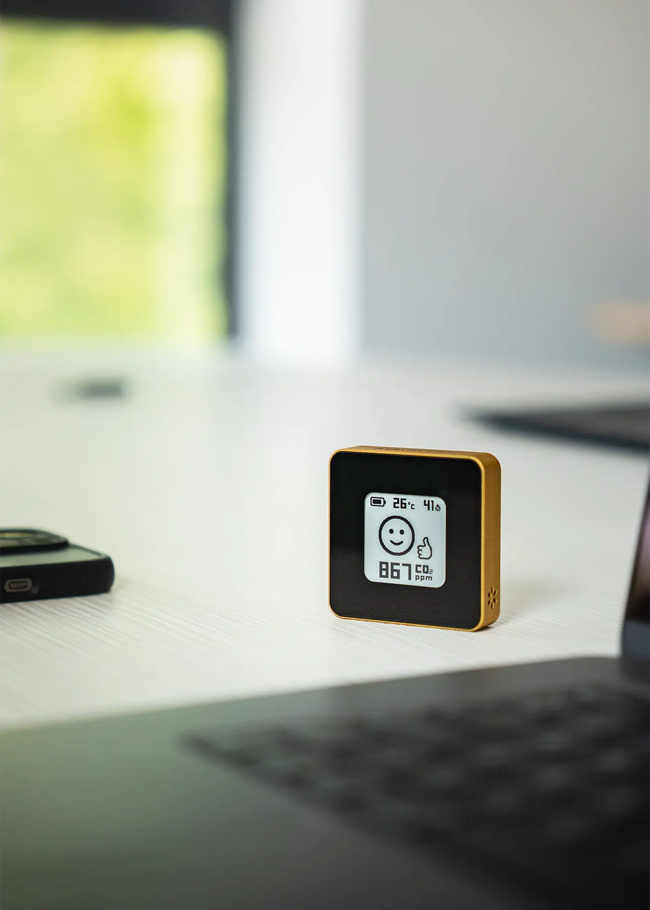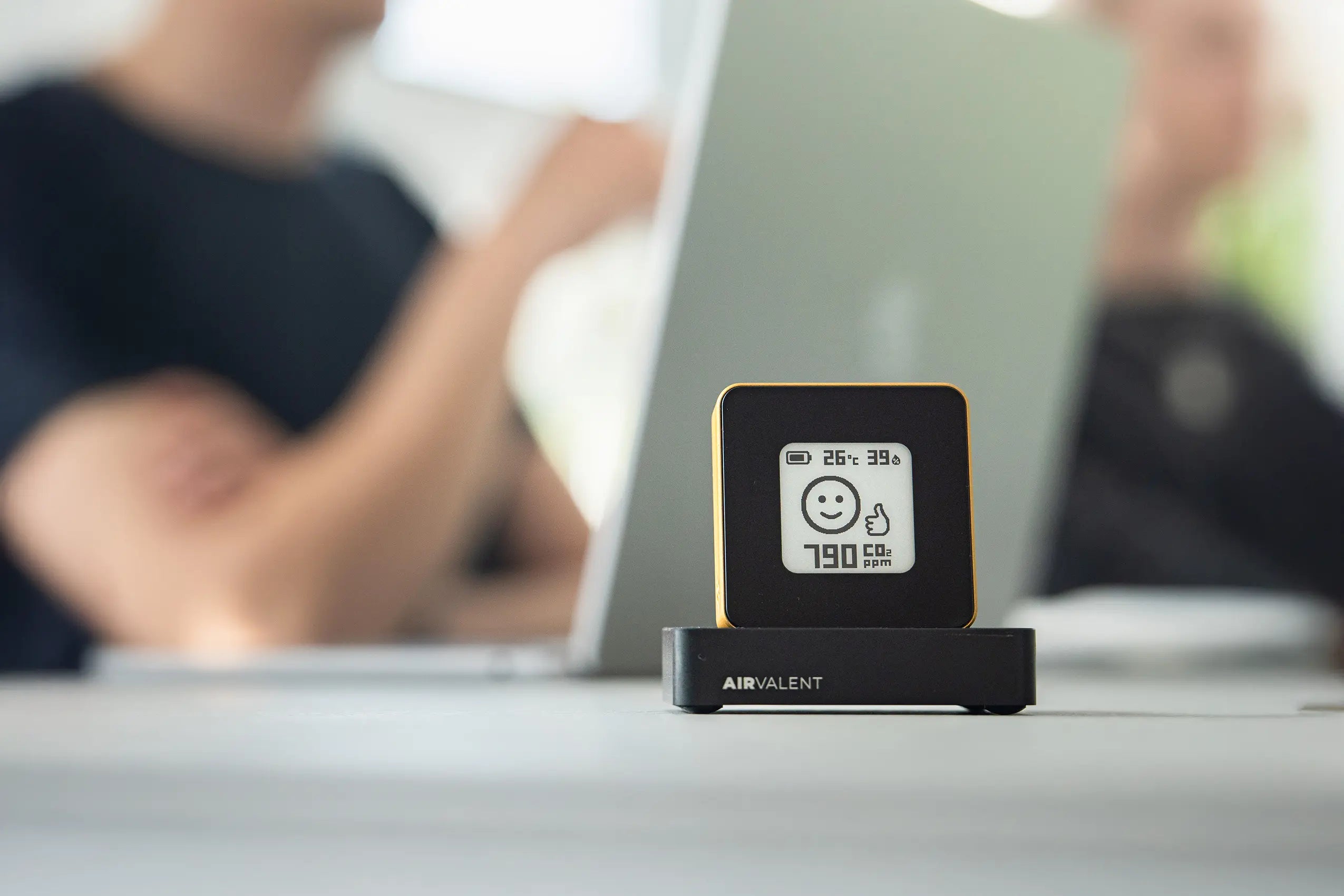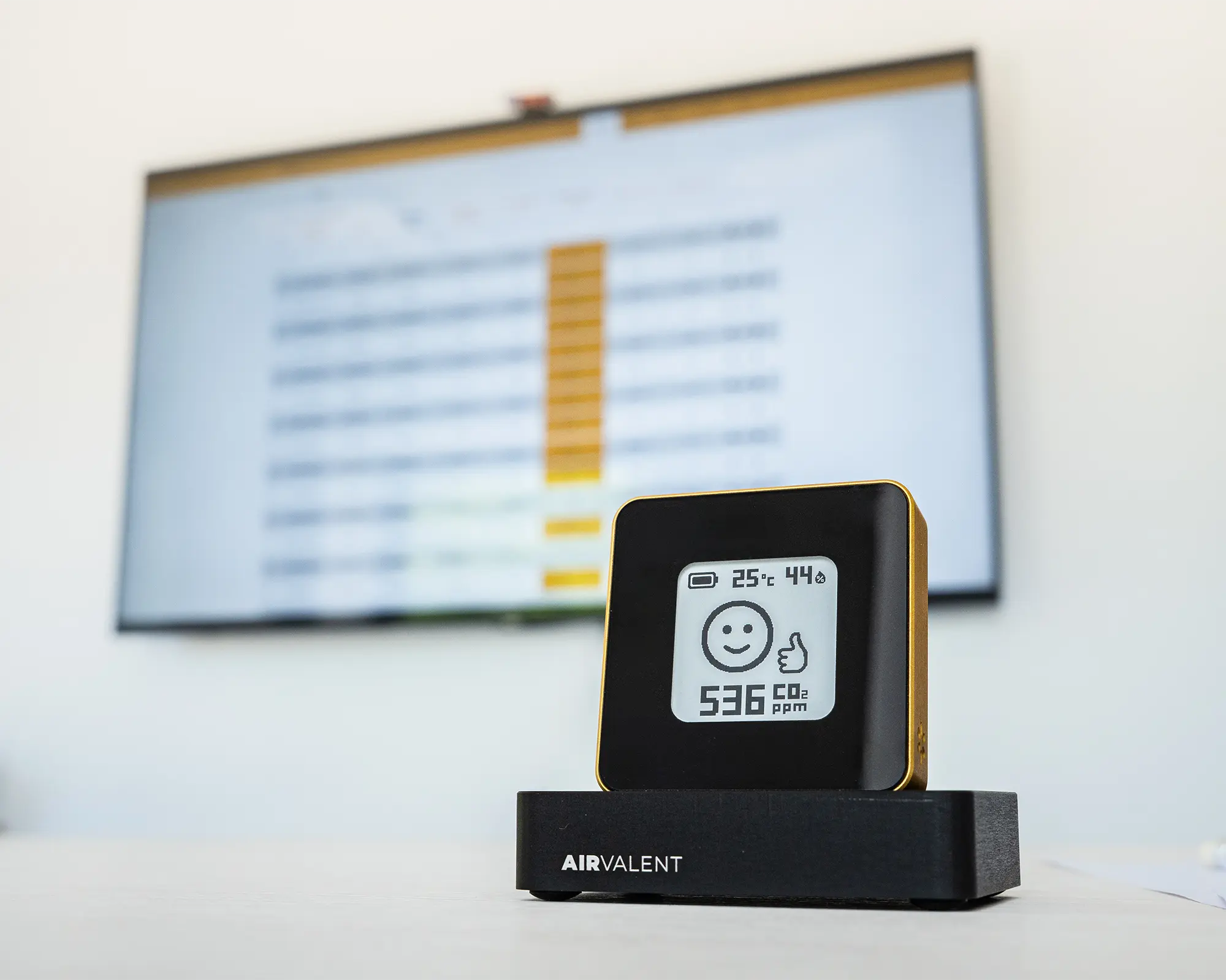 Personalisierter Airvalent CO₂-Monitor zur Echtzeit-Überwachung der Raumluftqualität.